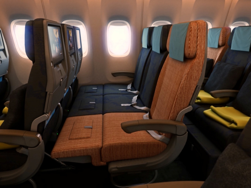 Armada terbaru dengan rute penerbangan ke New York, San Fransisco, Los Angeles dan Frankfurt ini menghadirkan beberapa kelas dalam kabinnya, sepertiĀ Premium Economy Class yang terletak di antara kabin ekonomi dan kelas Bisnis dengan menawarkan ruang kaki yang lebih luas dan kursi yang dapat direbahkan hingga 118 derajat, Premium Business Class yang setara dengan First Class dengan kursi yang bisa direbahkan hingga 180 derajat, dan Family Couch yang merupakan alternatif untuk para pejalan yang membawa anak dalam penerbangan mereka. Family Couch adalah penggabungan beberapa kursi di kelas ekonomi sehingga bisa membentuk ranjang sofa. Fasilitas ini hingga saat ini hanya dimiliki oleh Air New Zealand dan China Airlines.